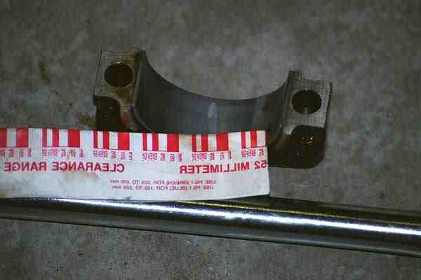 Adam asked about measuring the rod bearings when I mentioned before that I was replacing them. It seemed like a good idea even though I had no reason to suspect problems. At $0.95 per strip plastigage is a steal so why not. You can see (barely) one of the measurements here on an old bearing. The gauge slot that matches is 0.076mm. My bearings came out as 0.051, 0.051, 0.051, 0.063, 0.051, 0.063, 0.063, 0.063 for cylinders 1-8 respectively. The new bearing (I measured one for curiousity's sake) came out at 0.051. The specs are 0.02 to 0.07 for new bearings and 0.1mm as the wear limit. All in all I was happy to see the originals were in good shape and for the small cost and effort (as Mark predicted) it seemed good to replace them. |