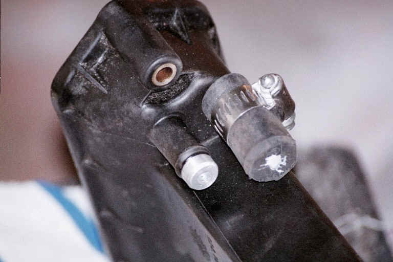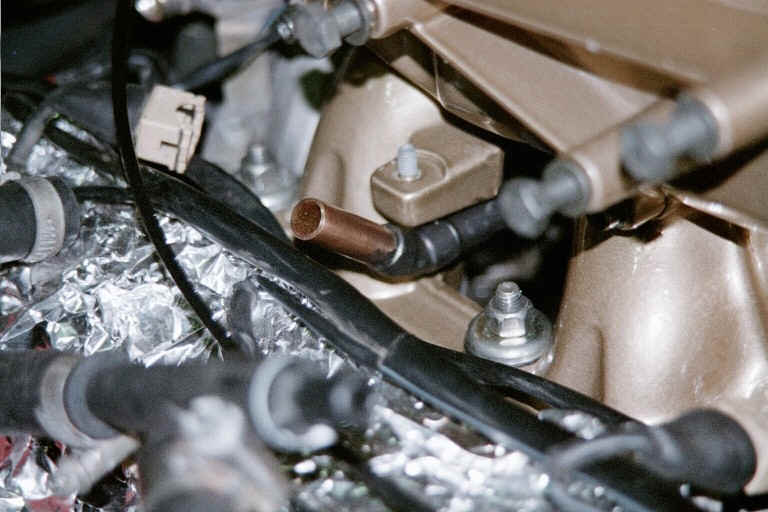 | Here is the end of the copper tubing on the drivers side protruding